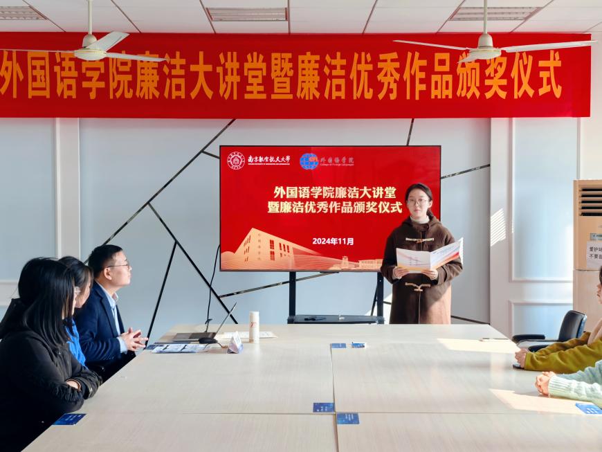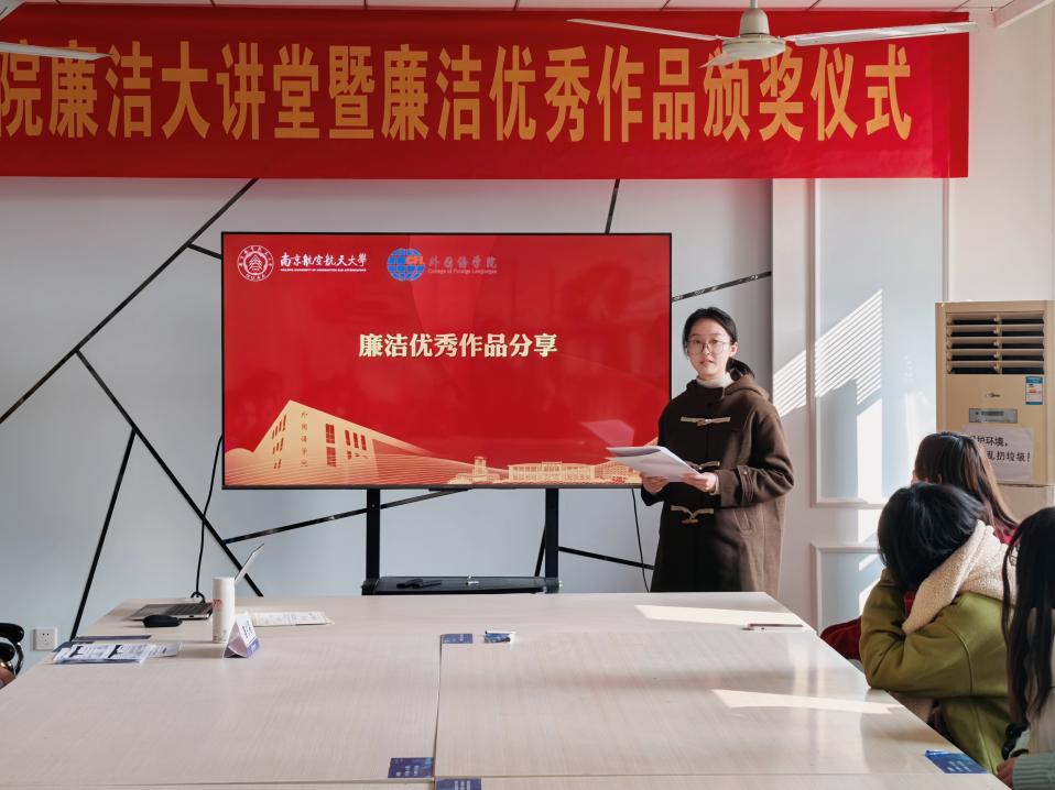 为深入贯彻落实党的二十大和二十届三中全会精神,深化“清廉南航”建设实效,星空影院 积极响应学校号召,组织开展了“清风伴行,廉韵沁心”廉洁文化作品征集活动,共收到视频、征文、书画、摄影等各类廉洁作品50余件。11月22日,星空影院 于学院廉洁文化角举办廉洁大讲堂暨廉洁文化优秀作品颁奖仪式。学院党委纪检委员、副院长姜礼福,各师生党支部纪检委员以及获奖学生代表参加了本次活动。