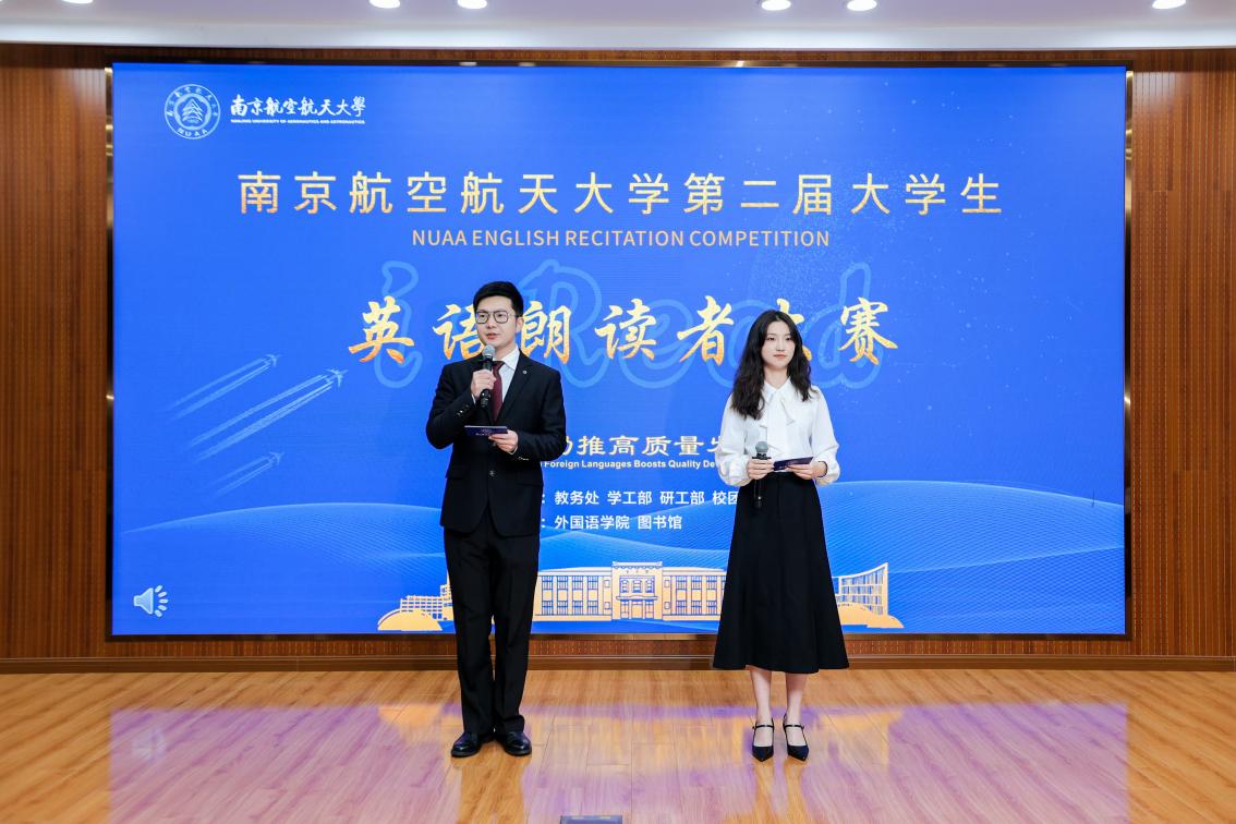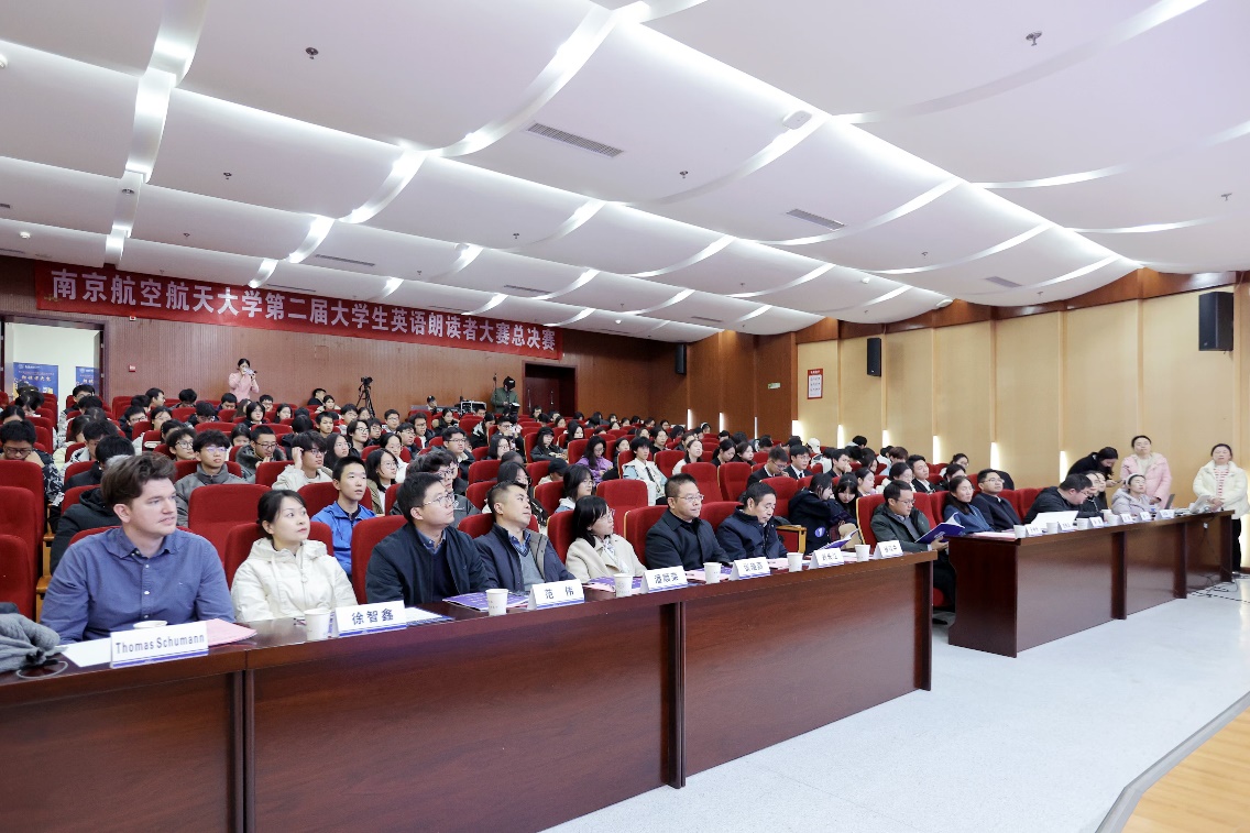 为提高我校学生英语口语表达能力和朗读技巧,提升学生人文素养,拓宽学生国际视野,鼓励学生讲好鲜活中国故事、展示美好中国形象,培育具备深厚中国情怀、广阔国际视野和卓越跨文化沟通能力的时代人才,12月12日,星空影院 第二届大学生英语“朗读者”大赛决赛在南航将军路校区图书馆一楼报告厅顺利举行。本次大赛由我校教务处、学工部、研工部和校团委主办,星空影院 和图书馆联合承办。将军路校区管委会主任王中叶、国际教育学院院长刘长江、教务处副处长张炜、党委宣传部副部长张晓燕、学生处副处长佘明、天目湖校区管委会/规建办副主任潘顺荣、校团委副书记杨一、研工部研究生教育管理处副处长范伟,星空影院 党委书记左彤云、星空影院 院长徐以中、星空影院 党委副书记吴科颖、星空影院 副院长徐智鑫、星空影院 外教Thomas Schumann等出席决赛并担任嘉宾评委。