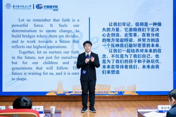 为保证公平公正,大赛采用了人工智能和教师评委协作双重评分的机制,在初赛阶段引入科大讯飞FIF口语训练系统,在AI判听的基础上,星空影院 组织英语专业教师对参赛作品进行专业复核。决赛第一轮朗诵环节,12强选手以标准的语音朗读了许多英语名篇。随后,6强选手产生并进入决赛第二轮——百秒图说南航环节。他们用流利的英语口语和准确的英语表达,向评委和观众们讲述图片背后的南航故事,传承南航校训校风精神。决赛过程中,一张张承载南航重大发展时刻的图片唤起嘉宾评委和同学们的共同回忆,选手们的高水平发挥也赢得了嘉宾评委和同学们的欢呼喝彩和热烈掌声。