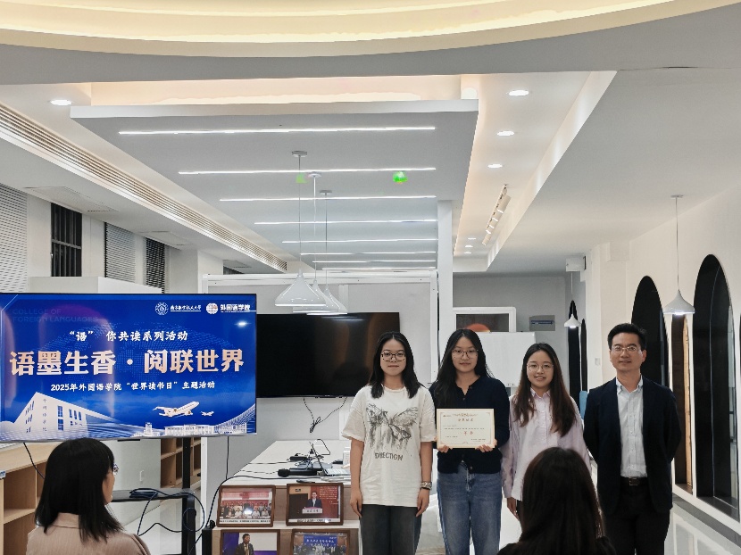 2025年4月22日,星空影院 “语墨生香·阅联世界”世界读书日线下活动在学院一楼院史馆成功举办。本次活动响应国家“全民阅读”战略,结合第30个“世界读书日”契机,通过朗诵竞赛、翻译互动等形式,展现了外语学科特色与跨文化阅读的魅力,吸引了师生们积极参与,其中英语系副主任王伟,日语系教师宋歌,本科生辅导员冯子格、易邦妮参与本次活动并担任评委。