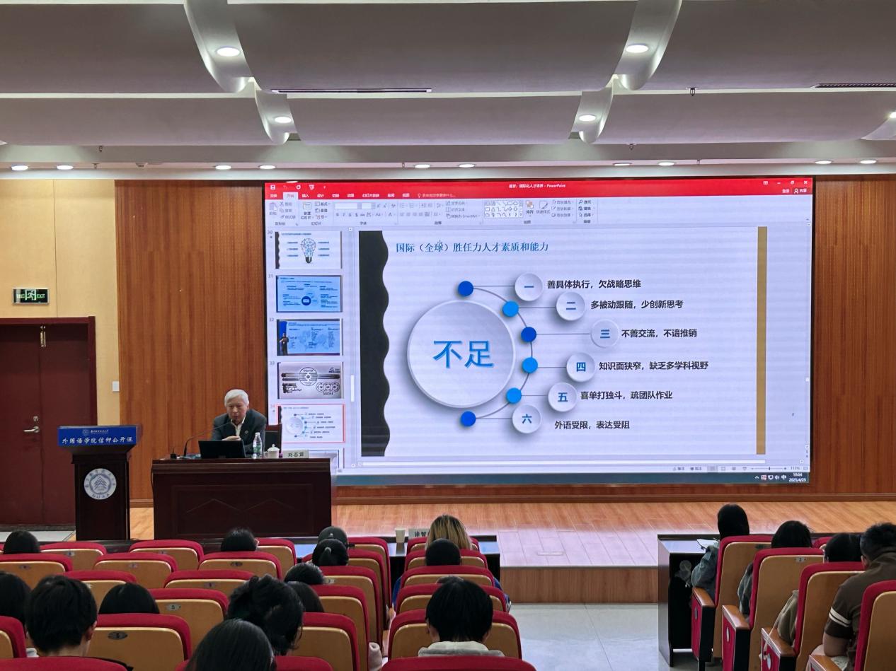 同时,刘志贤强调,青年学生要通过对比国际化人才必备素养,查找自身不足,建议着重培养规则制定、议程设置、舆论传播以及统筹协调能力,积极参与模拟联合国等社团活动,通过沟通交流,拓宽自身国际视野,以满足国际化人才的标准。