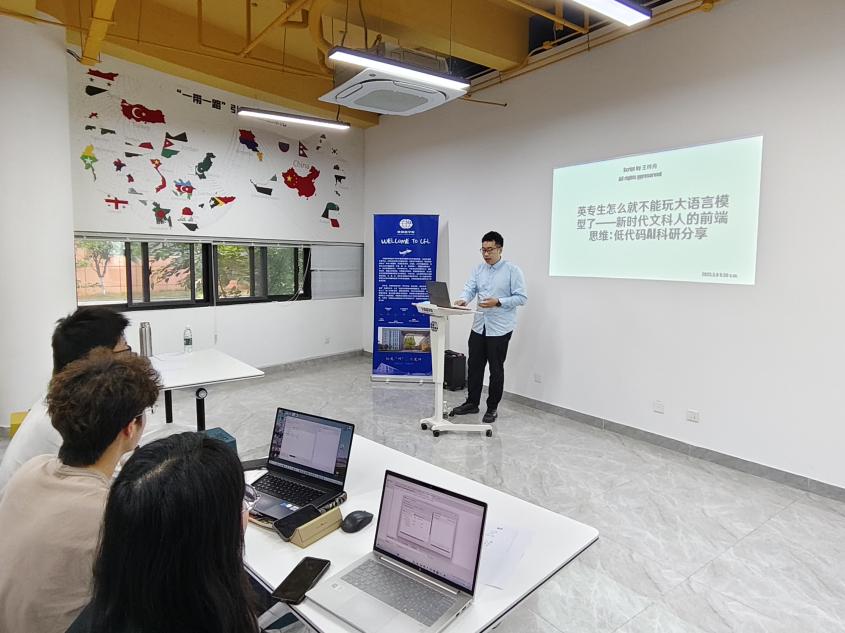 5月8日,星空影院 邀请大学外语教学部专业教师王秀文及在读研究生王梓舟于“一站式”学生社区开展“AI赋能语言学习与研究”系列讲座,专业教师钟勇及大一年级学生共同参加了本次讲座。