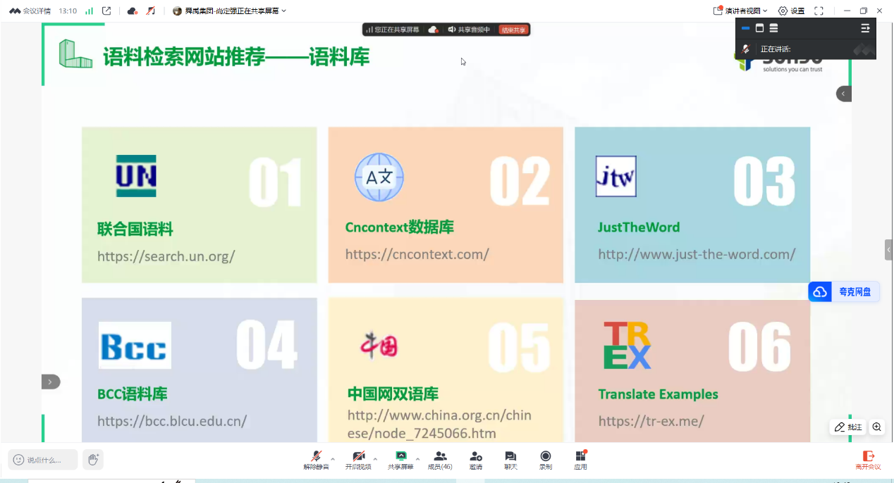 在结束语部分,尚定强指出,“君子生非异也,善假于物也”,建议同学们应掌握基本翻译工具,成为一名合格的新时代译员,同时应突破“工具使用者”的局限,进阶至技术开发思维,以应对行业挑战。本次课程从企业角度出发,介绍了翻译实用工具,体现了科技对翻译能力提升的促进作用。
