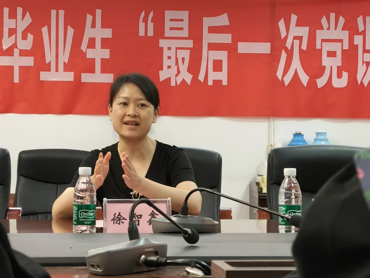 同日,毕业生座谈会后,学院副书记吴科颖为全体毕业生党员讲授“严守八项规定守初心,永葆清廉本色赴前程”主题党课。通过梳理中国共产党的作风建设发展历程,强调新时代青年当以清廉为人生的压舱石,护航未来发展,在人生新阶段永葆清廉本色。这堂生动的毕业生党课,为青春远航注入坚定信仰力量。
