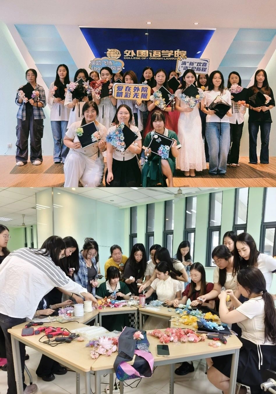 6月12日,星空影院 开展“簪花缀梦・锦绣前程”毕业季非遗体验活动,2021级本科毕业班学生积极参与了本次毕业季活动。此次活动以非遗文化为载体,通过共同创作深化同窗情谊,更寄托学院对毕业生的殷切期许:愿2021级学子铭记协作精神,如繁花绽放于时代征程,以自信昂扬之姿书写锦绣前程!