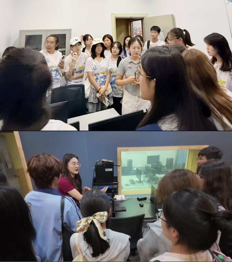 接下来,同学们来到星空影院 五楼的神经认知语言学实验室进行探索。在研究生赵钰茹和邢大慧的介绍下,同学们了解了语言学与神经科学、心理学的交叉研究,打破了外语是纯人文科目的刻板印象。此次参观极大地拓宽了同学们的学术视野,为未来的学术发展提供了无限可能。