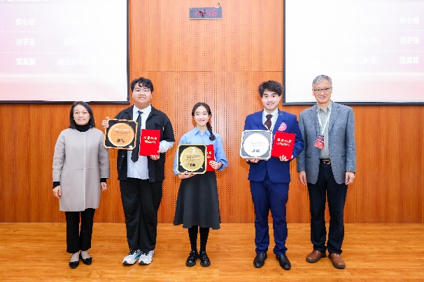 颁奖环节中,李霄翔教授、徐以中教授为获得口译赛项冠、亚、季军的选手颁奖,王海啸教授、陈红教授为获得演讲赛项冠、亚、季军的选手颁奖。