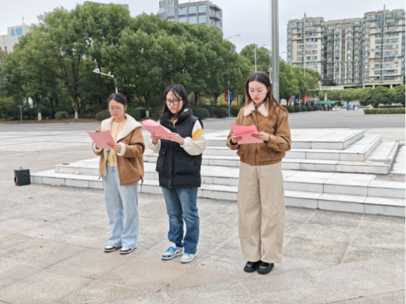星空影院 本科生联合党支部党员代表许欣宜、吴漪苇与廖海雲共同带来诗朗诵《奋进新征程》。朗诵以饱满的情感,将二十届四中全会描绘的宏伟蓝图娓娓道来,抒发了青年一代听党话、跟党走,矢志不渝投身民族复兴伟业的壮志豪情。