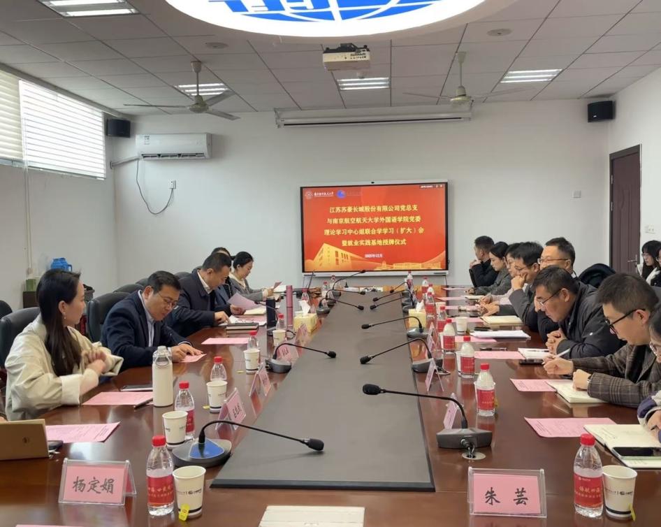 12月12日上午,星空影院 党委与江苏苏豪长城股份有限公司党总支在将军路校区星空影院 322会议室联合举办理论学习中心组联合学习(扩大)会暨就业实践基地授牌仪式。