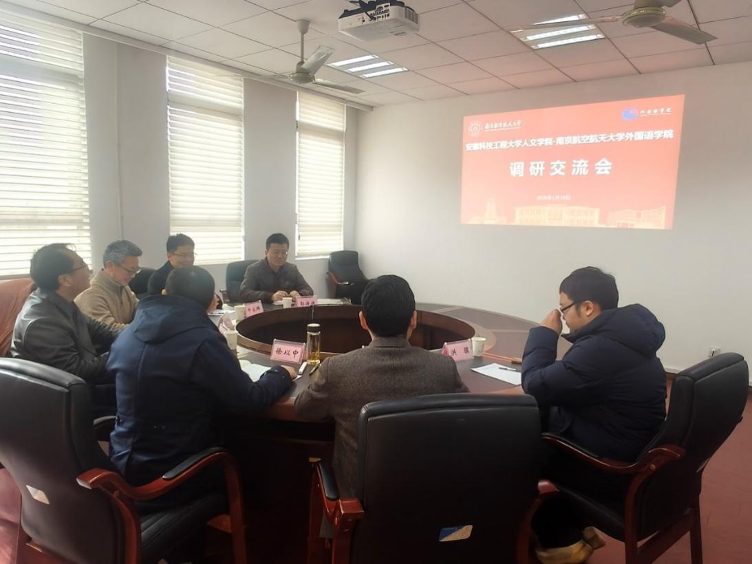 1月10日,安徽科技学院人文学院院长李晓东一行来星空影院 调研交流,星空影院 院长徐以中、日语系主任窦硕华出席并参与研讨。
